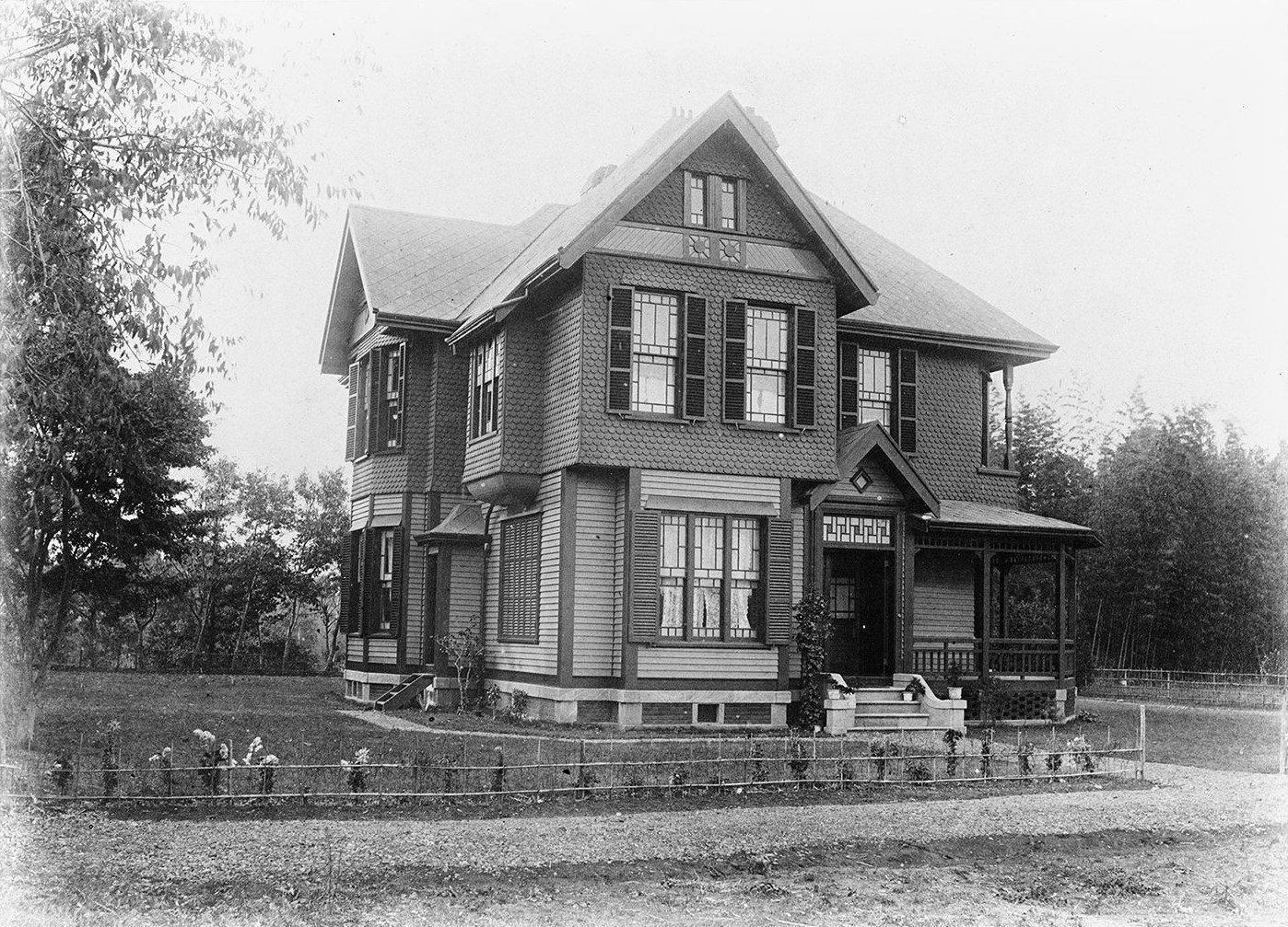 1889(明治22)年頃の竣工と推定される木造の宣教師館。J.C.バラ(John Craig Ballagh)が住んでいたことからバラ館と呼ばれ、1942(昭和17)年、高等学部校舎建設のため取り壊されました。