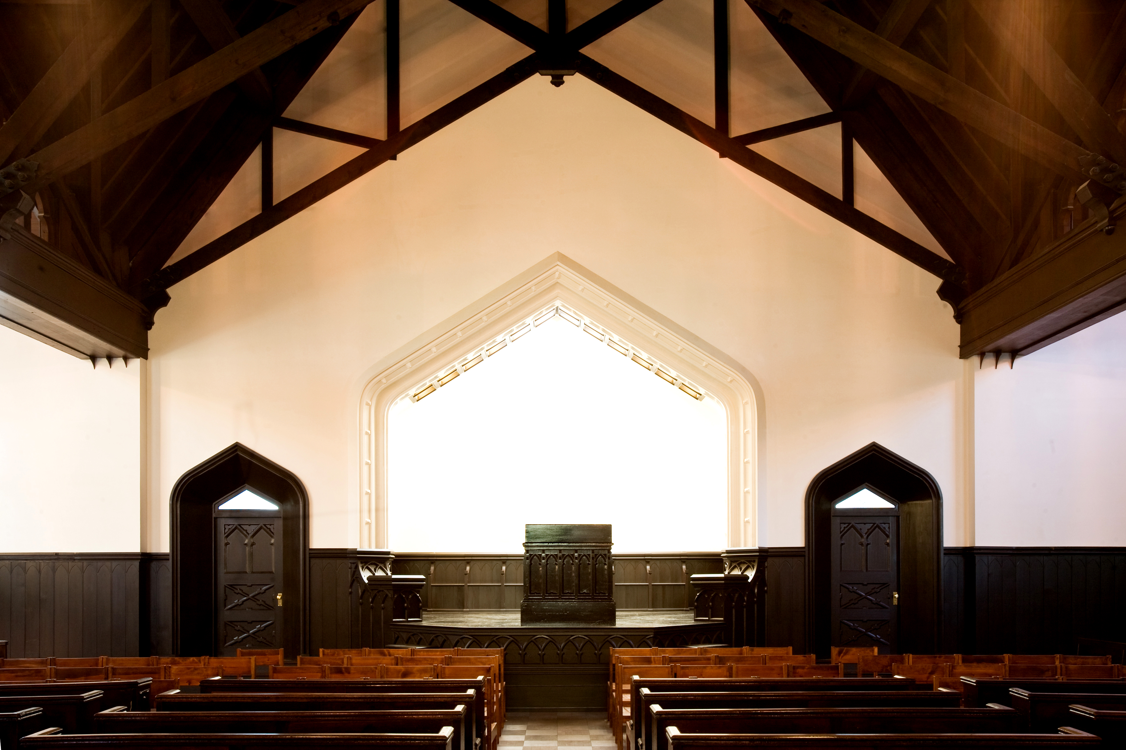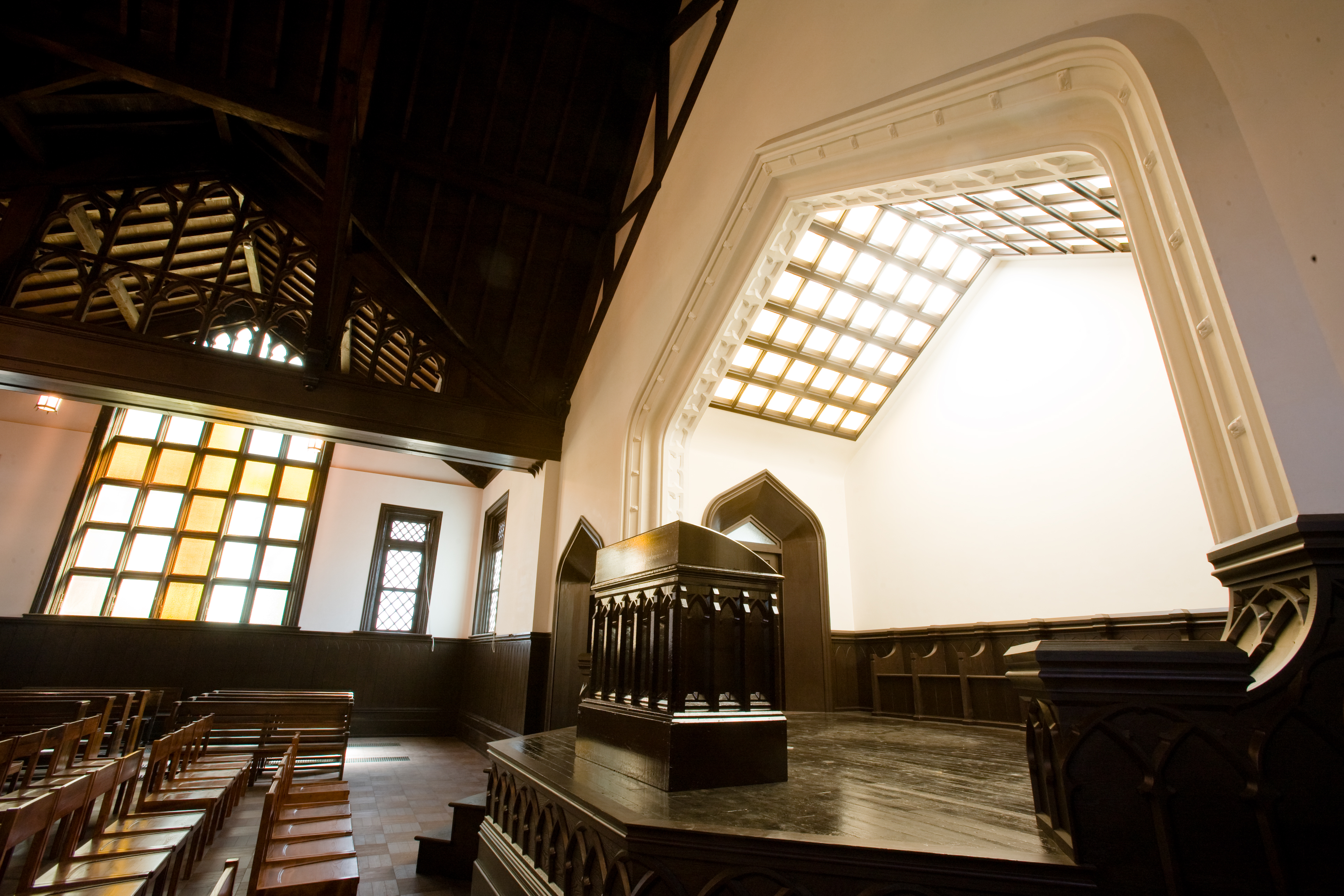 チャペルの改修工事により(2008年2月竣工)、正面講壇が創建当時の姿に