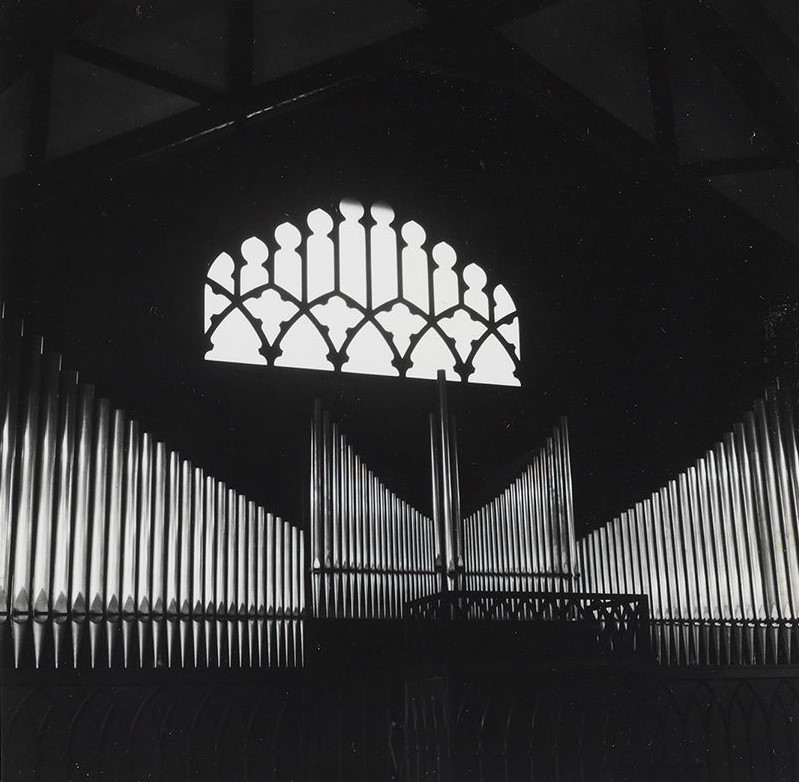 1966年2月19日、礼拝堂にパイプオルガンが完成し、奉献式が執り行われました。講壇いっぱいに広がったパイプの列は「天使が翼を広げているようだ」と言われました。そのデザインは「明治学院の学生が世界に羽ばたいていって欲しい」との願いをG.J.ヴァン・ワイク宣教師が込めたものだと言われています。