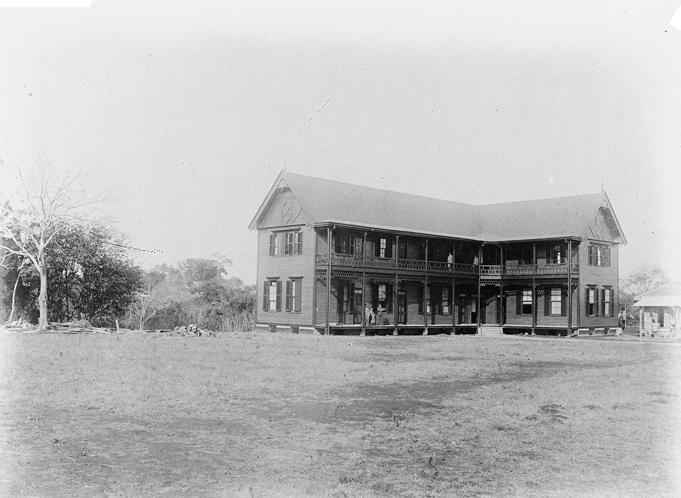 工事は1889年の4月から始まり、夏の間に従来H型だった校舎をL字型の建物に設計変更、ヘボン館に並んで現在の八芳園側に建設されました。寄付者の名前をとり、この建物はハリス館と名付けられ、神学仮校舎および幹事の住居として使われた後、1890年6月に神学部校舎兼図書館(現記念館)が完成すると、ハリス館は神学部生の寄宿舎となりました。
