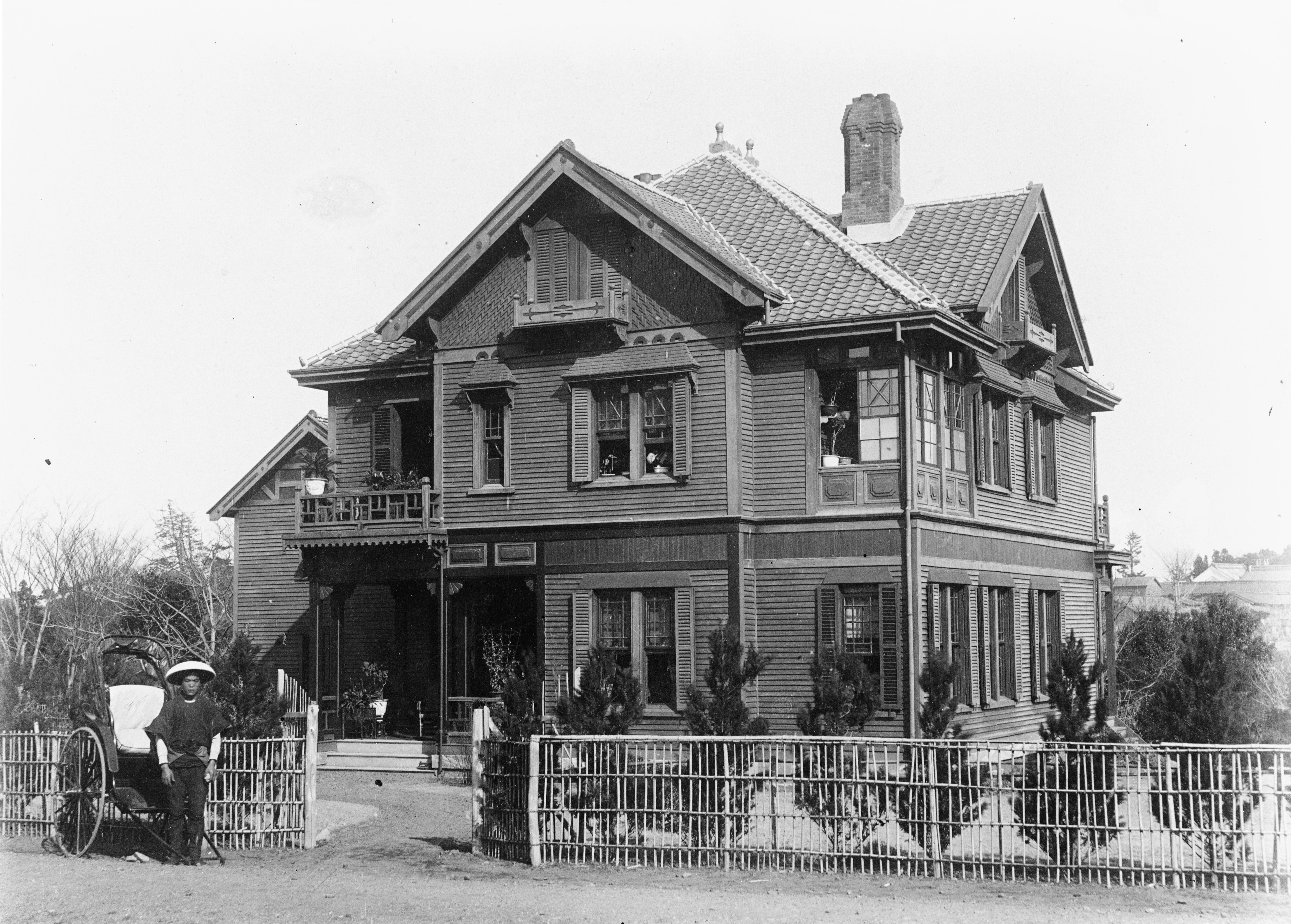 1887(明治20)年1月に設置認可を受けた明治学院は、白金の地にキャンパスの整備を始めます。サンダム館(普通学部校舎兼講堂)やヘボン館(寄宿舎)とともに、外国人宣教師たちの住宅がキャンパス内に建設されました。インブリー館はそのうち1棟で、竣工は1889年頃と推測されています。インブリー夫妻(William Imbrieとその妻Elizabeth Doremus Jewell)が長く住んでいたため、この名前で呼ばれています。都内に現存する最古の宣教師館であり、日本での洋風住宅の変遷を知る基準作としての位置を占めます。