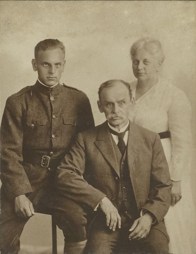 ランディスの後方には妻のエンマ(Stiefler, Emma Marie)と子息(James McCauley Landis)が立っている。