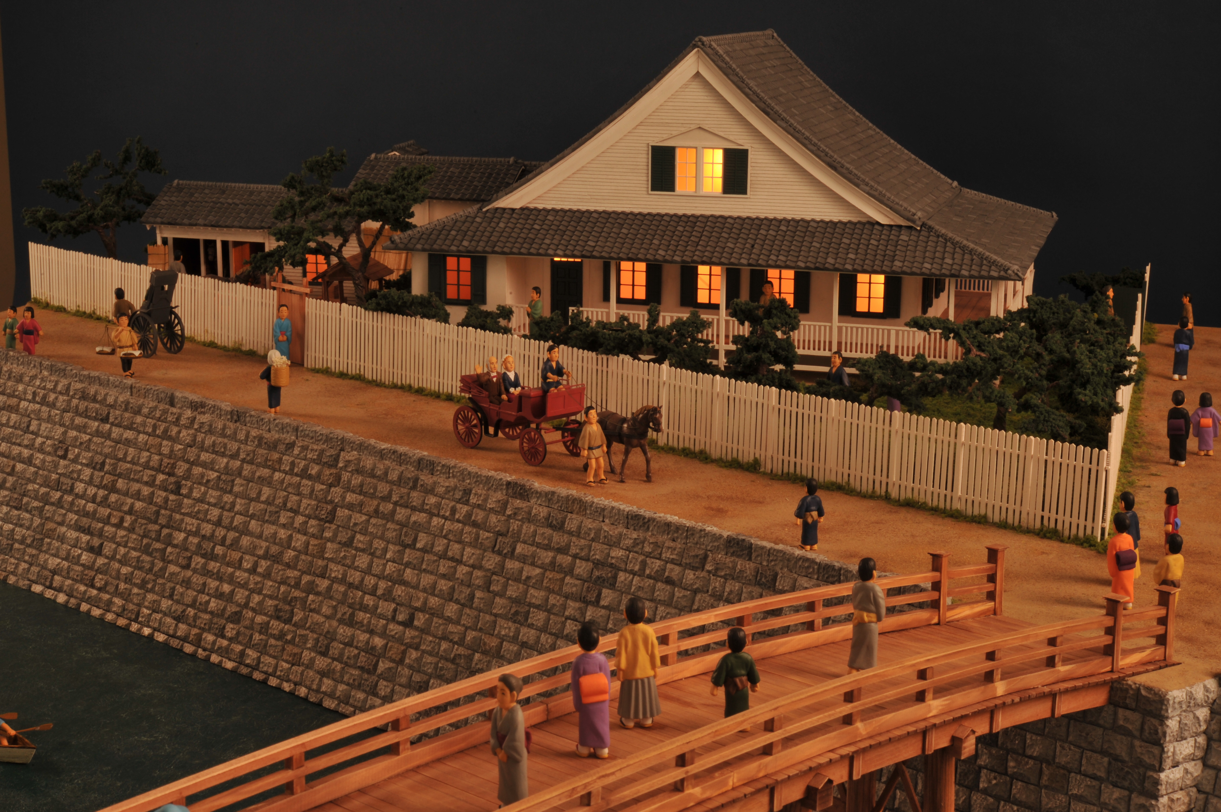 - 居留地(外国人居留地):政府が外国人の居留および交易区域として特に定めた一定地域のこと。1858年、日米修好通商条約など欧米5ヶ国(アメリカ、イギリス、フランス、ロシア、オランダ)との条約により、箱館(現:函館市)、神奈川(横浜 現:横浜市神奈川区)、長崎、兵庫(現:神戸市兵庫区)、新潟に設置されました。ヘボン博士が居を構えた横浜居留地39番は現在の山下町の旧横浜地方合同庁舎付近にありました。居留地は条約改正により1899年に廃止されるまで存続しました。