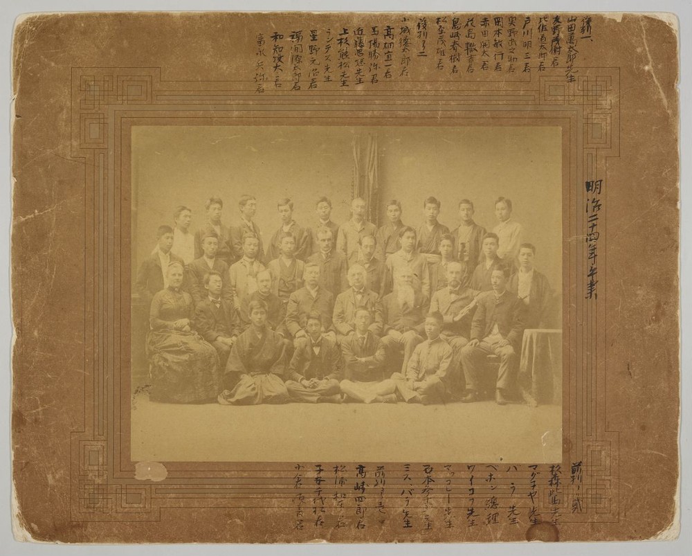 1891(明治24)年6月撮影。明治学院普通学部第一期生の卒業記念写真。