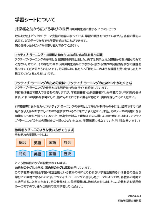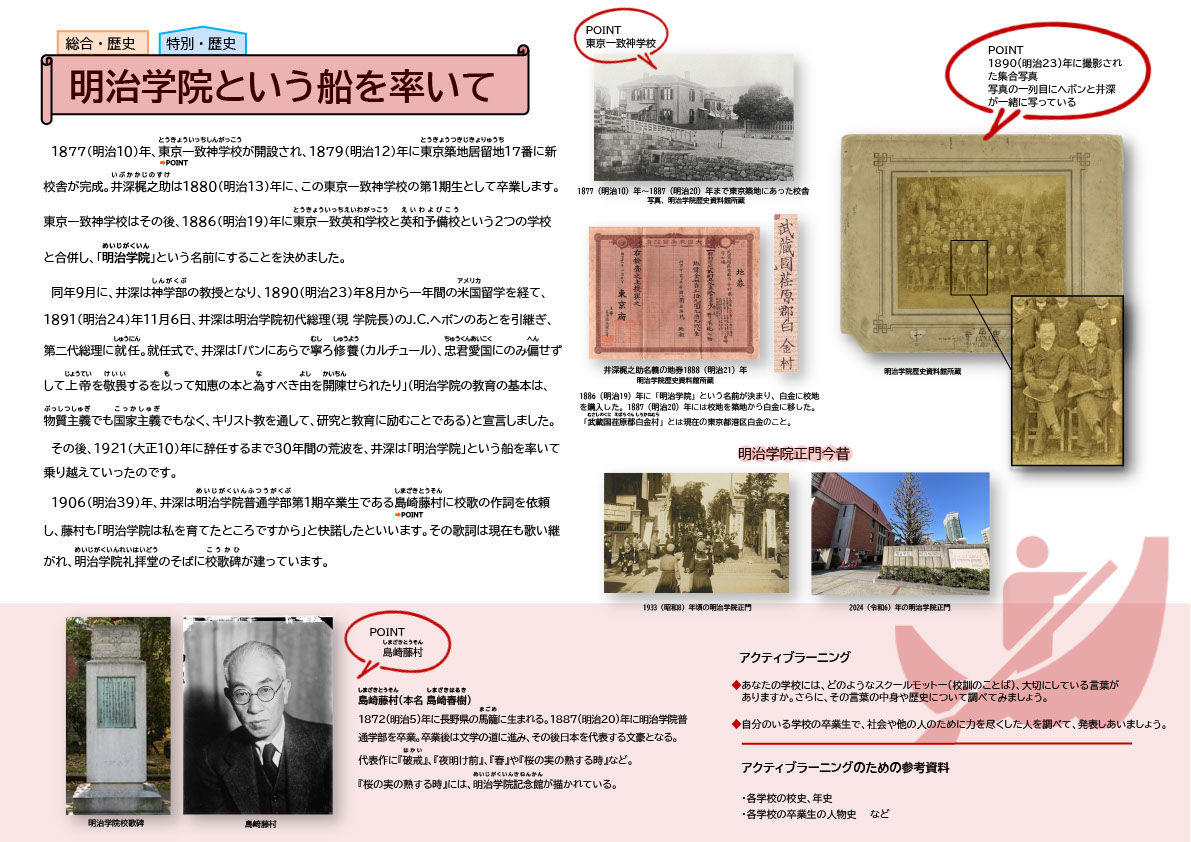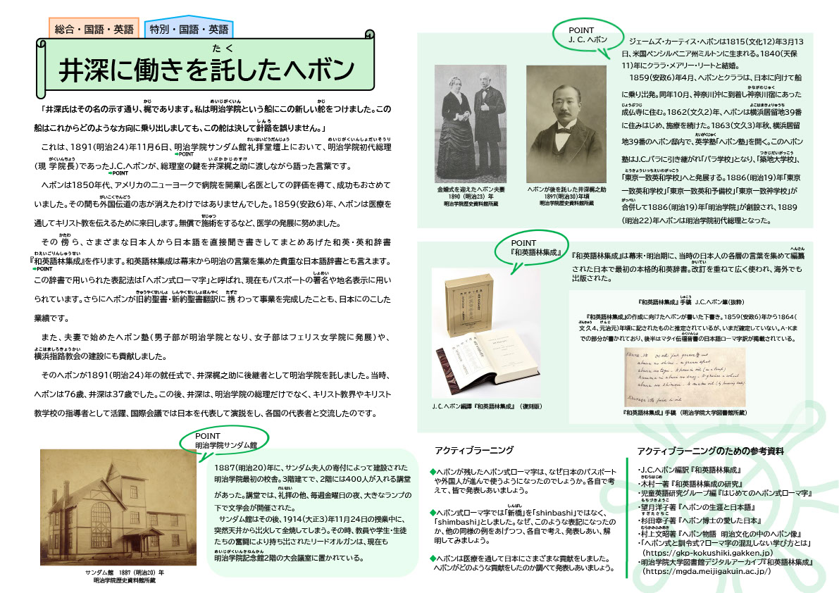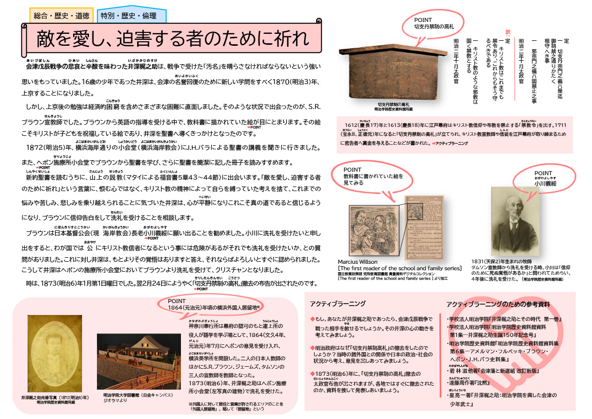 PDFデータ 学習シートについて PDFデータ 国破れて山河在り PDFデータ 敵を愛し、迫害する者のために祈れ PDFデータ 英語の達人・井深梶之助 PDFデータ 明治学院という船を率いて PDFデータ 井深に働きを託したヘボン PDFデータ 信教の自由・教育の自由を求めて