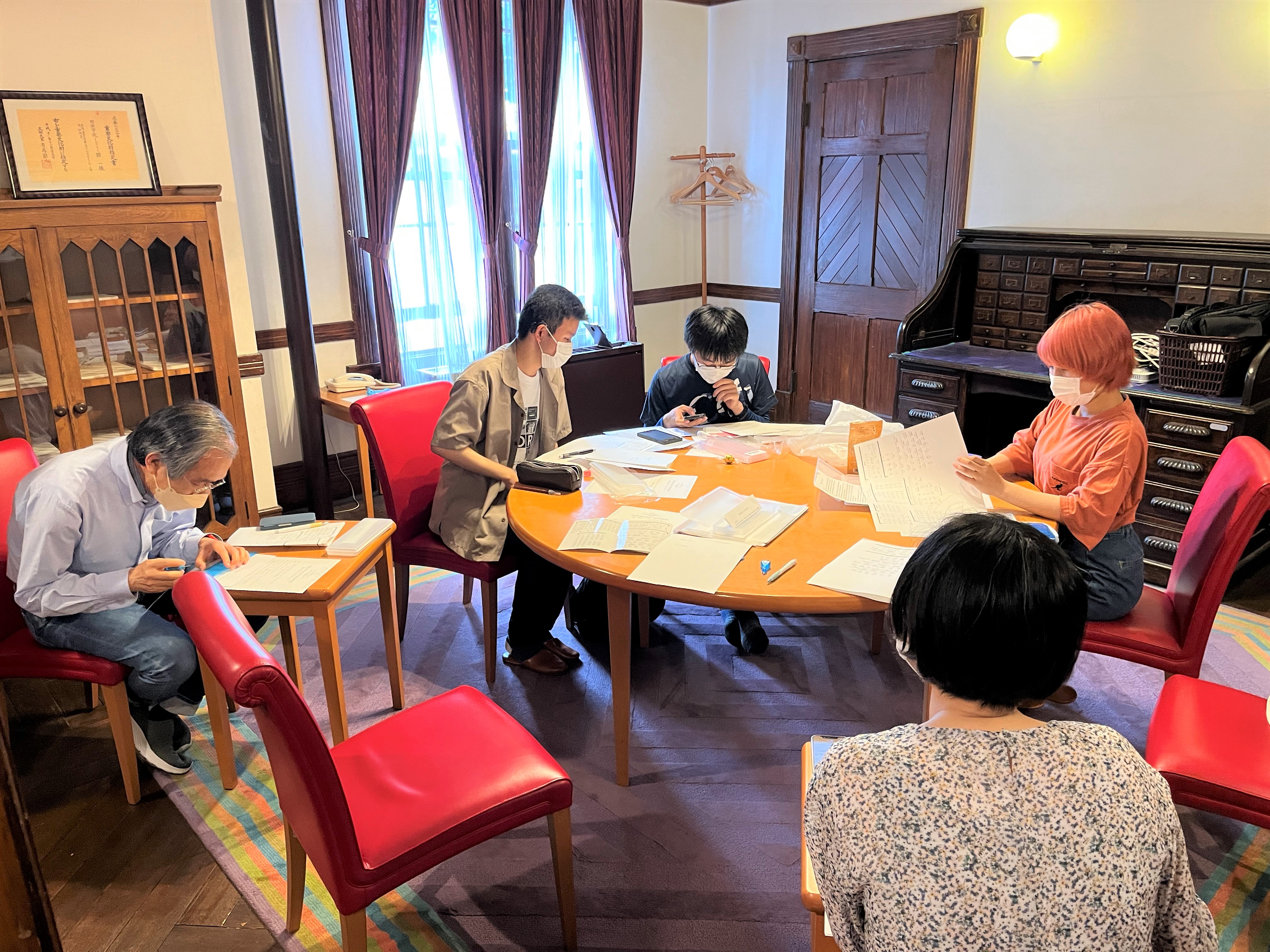 パネル制作にあたり、ミュージアムビジョンのもとに学生との「共創」を目指している歴史資料館では、明治学院点訳サークル「点訳会」に協力を依頼しました。点訳会と歴史資料館スタッフによるワークショップの開催や打ち合わせを重ねています。